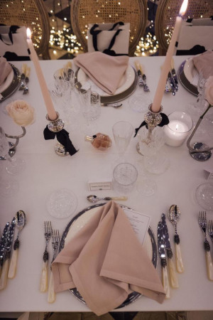 Rather than a traditional seated dinner, the experience was conceived as a narrative journey. Guests were invited to step inside the world of the fragrance, where design, scent and emotion converged around the table. Bold, immersive floral compositions and warm, enveloping lighting transformed the dinner into a moment suspended in time.
